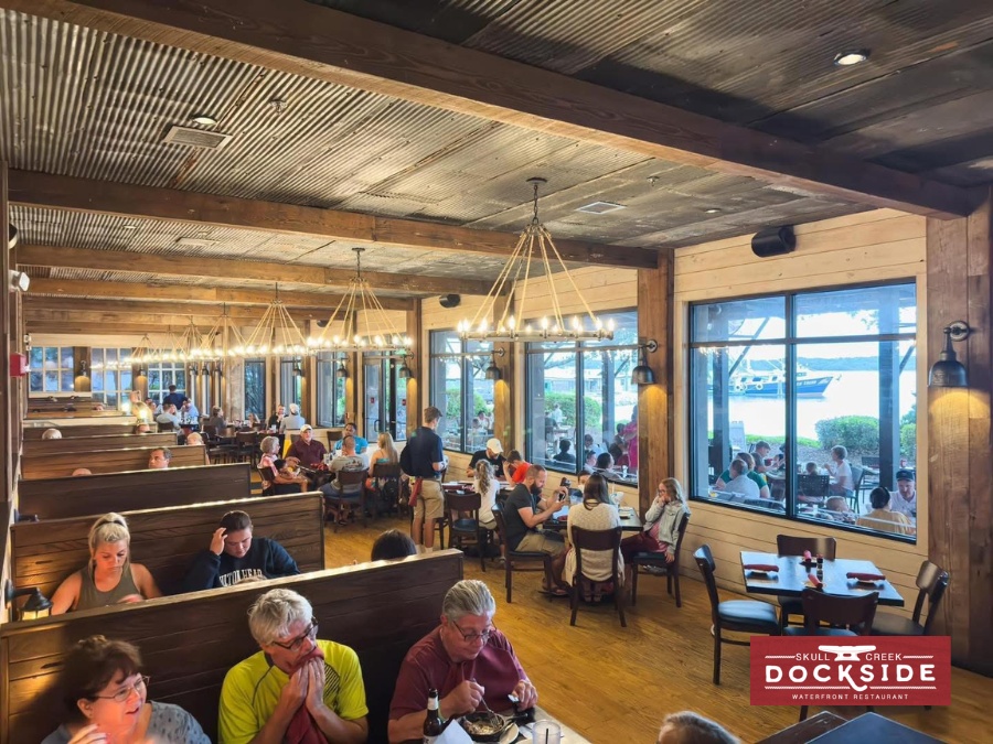 Why We Chose This Spot: It’s modern yet relaxed, scenic yet social. Skull Creek Dockside gives groups the best of both worlds — spacious seating and the kind of view that reminds you why everyone loves Hilton Head.